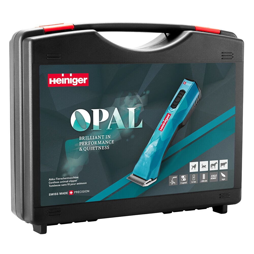 Heiniger Opal är en kraftfull och ergonomisk batteridriven klippmaskin som erbjuder frihet från sladdar samtidigt som den levererar imponerande prestanda. Med två hastighetsnivåer, lång batteritid och låg vikt är den perfekt för klippning av häst, nötkreatur, hund och katt. – samt för veterinärklippning och styling.