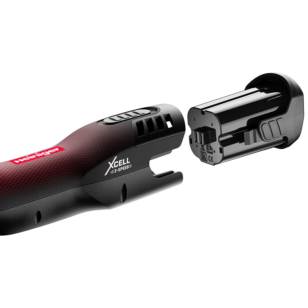 Heiniger Xcell 2-Speed är en cordless batteriklippmaskin med ett kraftfullt Li-ion-batteri (14,4 V, 5 000 mAh) och två hastigheter – 2 500 och 2 800 dubbelslag per minut – som gör den flexibel för både detaljer och grovklippning.