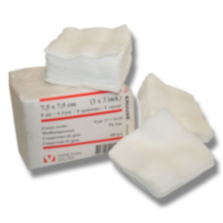 Kompress i gasväv Kruuse ej steril. Absorberande osteril multikompress i 8-lagers i gasväv av 100% bomull. Används för t ex sårrengöring, sårbehandling, polstring och desinficering. 100 st/fp.