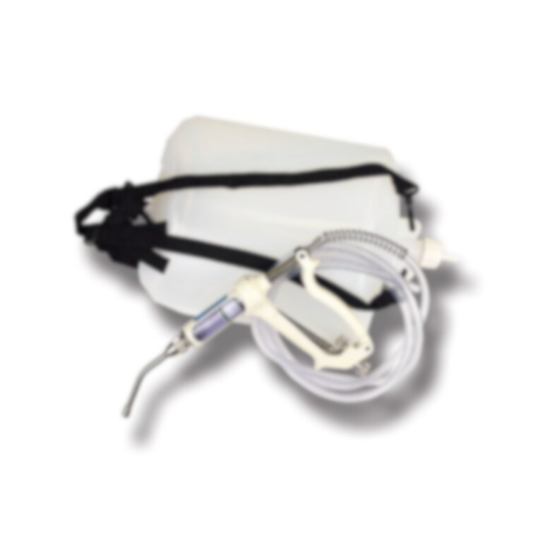 Doseringsspruta "Henke" med 2,5 liters ryggbehållare. Steglöst inställbar doseringsmängd från 0-25 ml. Efter varje tömning fylls sprutan automatiskt från ryggbehållaren med den inställda vätskemängden.
