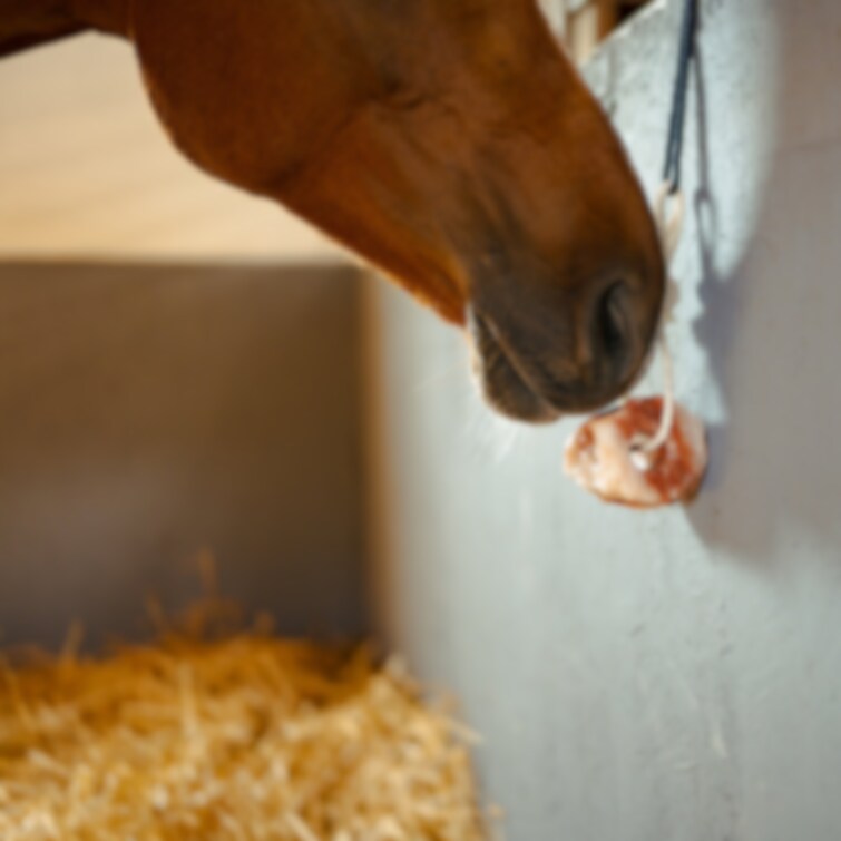 Rosaskimrande Himalayasalt, naturligt rikt på för hästen nödvändiga mineraler och spårämnen. Enkel att hänga upp i boxen för att tillgodose hästens dagliga saltbehov. Rep för upphängning ingår. Utseendet varierar från sten till sten beroende på naturliga skiftningar. 2-3 kg