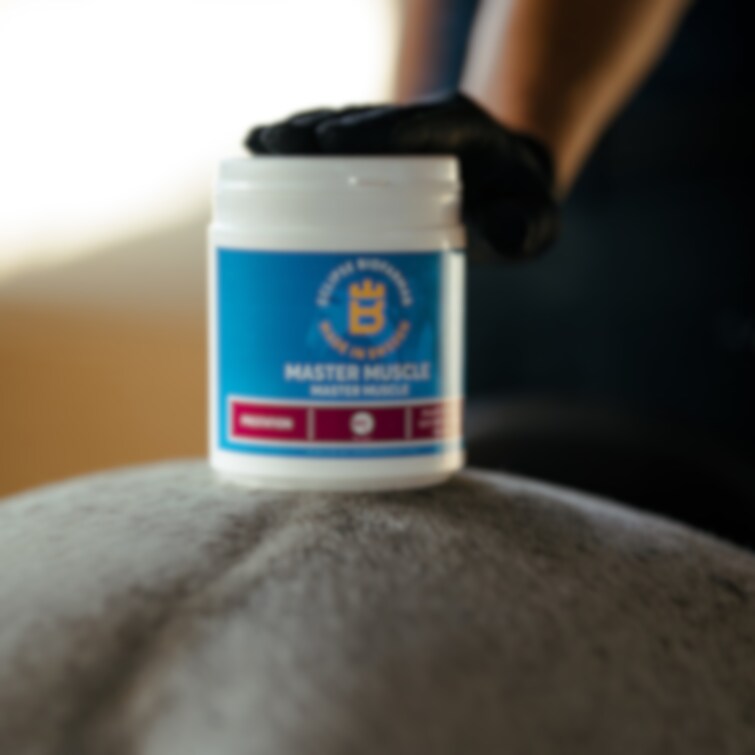 Master Muscle är ett fodertillskott för hästar som har svårt att sätta muskler. Innehåller gamma-oryzanol, som enligt omfattande forskning, har tillväxtbefrämjande egenskaper. Innehåller även e-vitamin, lysin, inulin och krita. Idealiskt för styrketränande och hårt arbetande hästar samt unghästar.