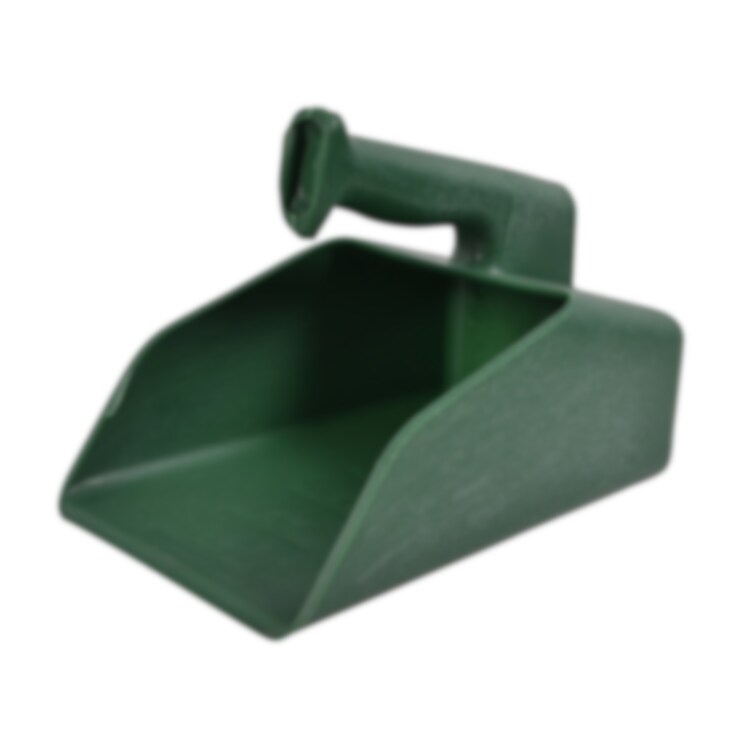 En ny foderskopa tillverkad av grön, polypropylen som är UV-stabiliserad för lång användning och hållbarhet. Skopans handtag är ergonomiskt placerat vilket gör den lätthanterlig.