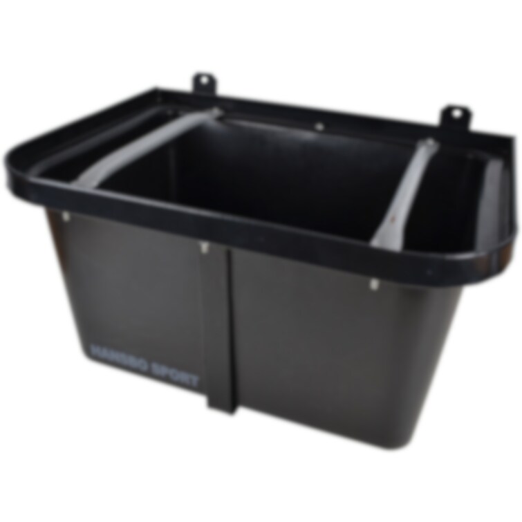 En robust frontkrubba i hårdplast med stålram. Levereras med tvärstag, som hindrar hästen att få ut fodret på golvet. Svart.