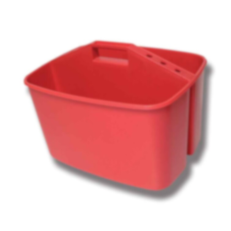 En praktisk hink att använda i juvervården. Ett fack till rena och ett fack till smutsiga juverdukar.