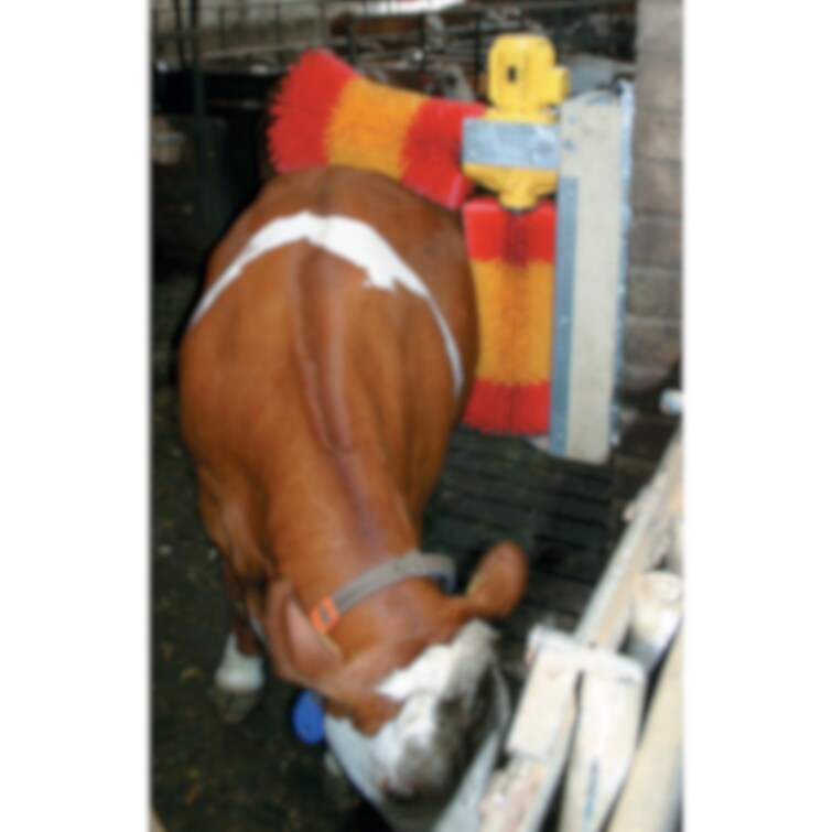 Detta är en dubbelborste som är konstruerad för att användas i lösdriftsstallar. Det är ett känt faktum att användandet av en sådan borste ökar djurens välbefinnande och hälsa. Som ett resultat av detta ökar mjölkproduktionen. Borsten sätts igång avdjuren själva genom att de trycker sig mot borsten och när de lämnar borsten stängs den automatiskt av efter några sekunder. Borsten ställer in sig efter djurens storlek. Byter roteringsriktning vid överbelastning. Effekt: 037KW 230V/50Hz Varv/min: 6
