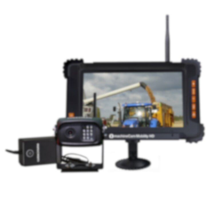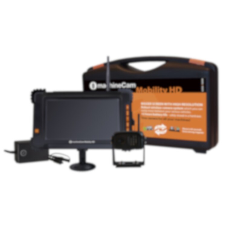 Med en räckvidd på upp till 100 m är MachineCam Mobility HD en allt-i-ett-lösning som du kan använda för alla dina maskiner. Den har en unik monteringslösning där kameran fästs med magneter med en hållkraft på 40 kg. 7 tumsskärmen drivs med ett 12 V uttag och fästs på maskinen med ett starkt sugfäste. Den IP69K klassificerade kameran har upp till 10 meters mörkerseende och du kan ansluta två kameror till systemet. Kameran kopplar automatiskt ihop med skärmen när de är påslagna. Skulle stora mängder stål etc. blockera signalen går det att lägga till en kabel med antenn som kan monteras på ett sätt som ger fri sikt.