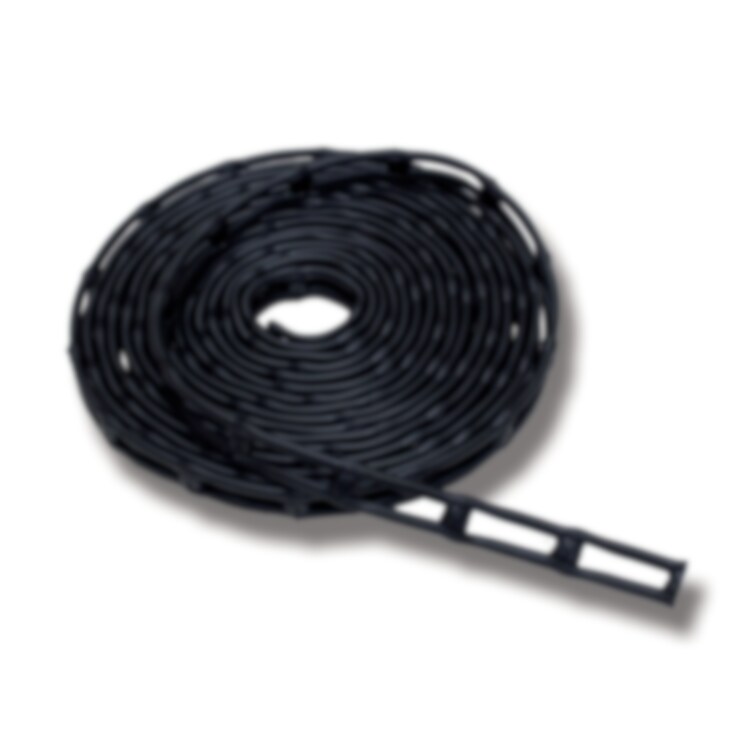 Stegspännare som enkelt kan kapas i önskade längder och fästas mot hake eller S-krok. Spännaren används inom många olika områden och löser enkelt dina fastspänningsproblem. Tillverkad i svart naturgummi. På rulle.Mått på hål ca 55x15mm