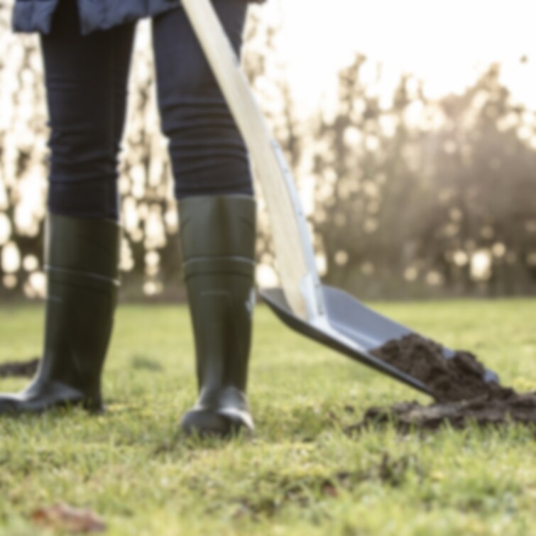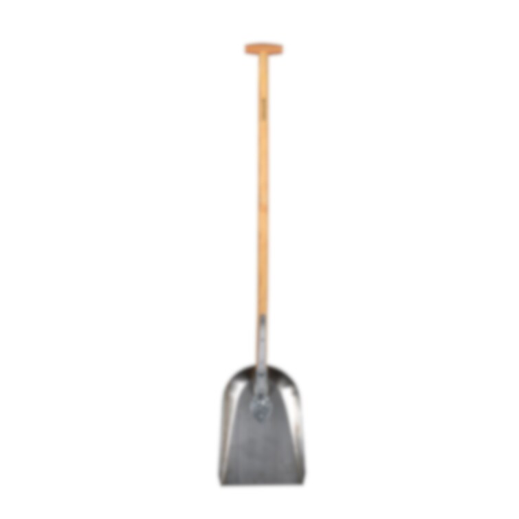 Linoljat träskaft i ask. Blad tillverkat av härdat svenskt stål. Bladets storlek: 235x335 mm. Totallängd: 1220 mm.