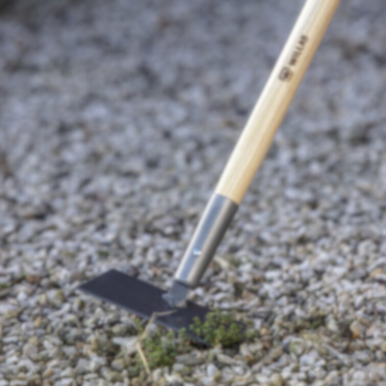 Grafitgrått blad i stål och träskaft och T-krycka i trä. Bladets tjocklek 1,8 mm, skaftets Ø 28 mm, total längd 1600 mm.
