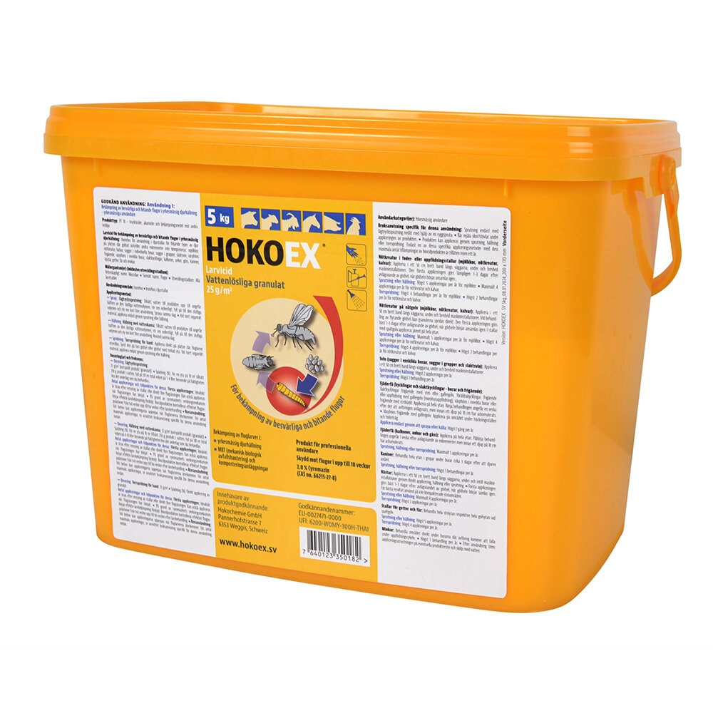 HokoEX är ett högeffektivt granulat särskilt framtaget för bekämpning av fluglarver inom djurhållning. Genom att rikta in sig på det stadium där 80 % av flugpopulationen befinner sig – som ägg och larver i gödseln – ger HokoEX en långsiktig lösning på flugproblemet.