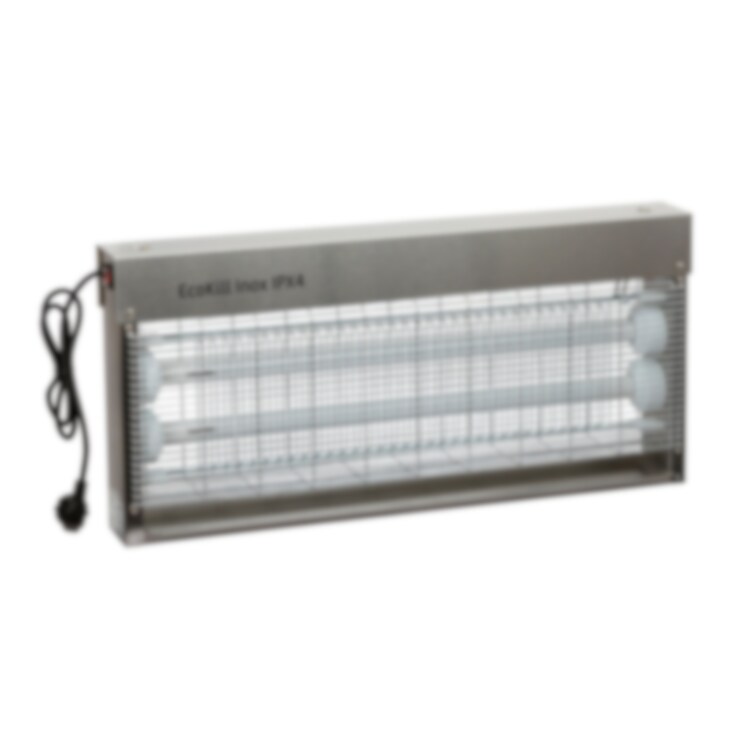 EcoKill Inox är en elektrisk insektsfångare. Levereras med två 18W lysrör, uppsamlare och kedja för upphängning. IPX4-godkänd, vilket innebär att den tål fuktiga miljöer som t.exe. stall.Tillverkad i rostfritt stål med en matt yta vilket gör den lätt att rengöra. Täcker ytor upp mot 200 m². LxBxH 720x120x325mm.