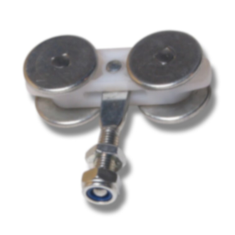 Hängrulle för skjutport med metallram. Passar till skena 290. Stålhjul. Infästningsbulten är 10x30 mm.