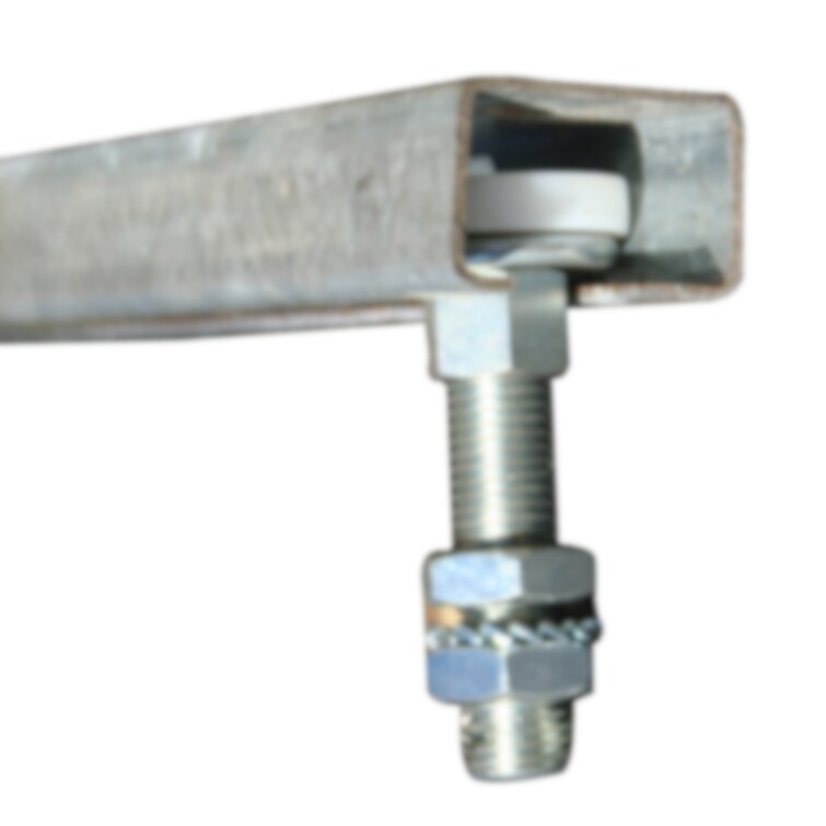Toppmonterad styrrulle för rälsgående skjutportar av metallram. Passar till styrskena 900.
