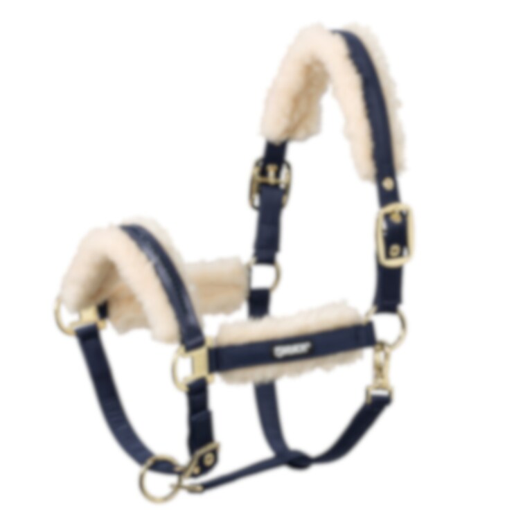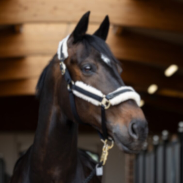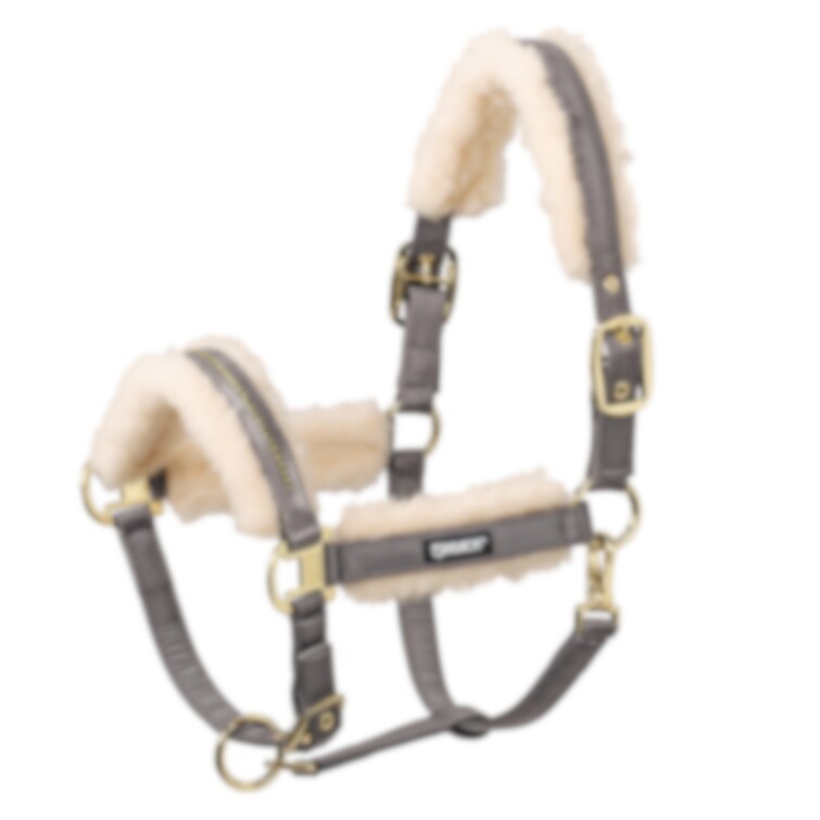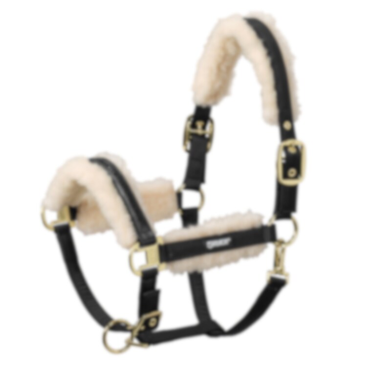 Elegant grimma med glansigt yttertyg och kristallstenar på nosgrimman. Utrustad med slitstarkt vävband inuti. Fodrad med mjuk och lättskött EVO-Wool i nos, nacke och sidostycken. Dubbla piggspännen för symmetrisk justering. Justerbar även under hakan.