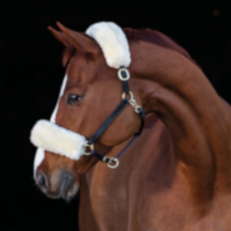 Nackludd med karborr, creme fårskinn.