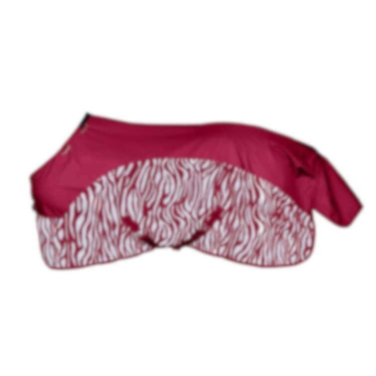 Hybridtäcke med 600D Ripstop polyester över ryggen och finmaskigt zebramönstrat polyesternät på sidorna. Waterproof mvp3000/3000.Dubbla bogspännen med snabbknäppen, höga bogveck, kryssgjordar, ringar för halstäckesamt avtagbara bensnören.Perfekt för sommaren, skyddar mot regn och insekter. Levereras komplett med avtagbart halstäcke.