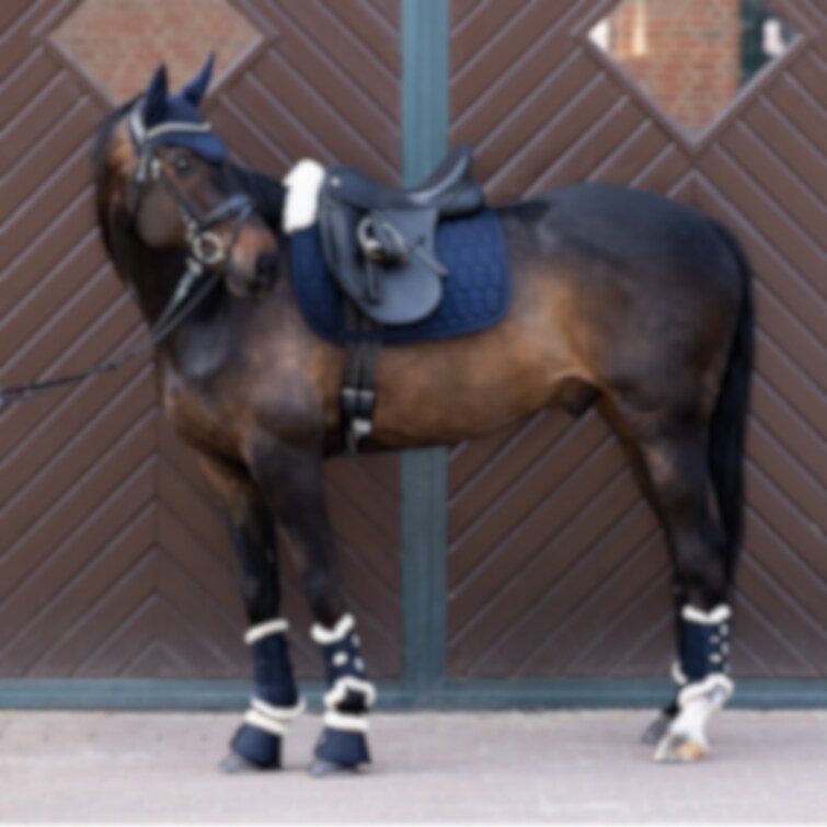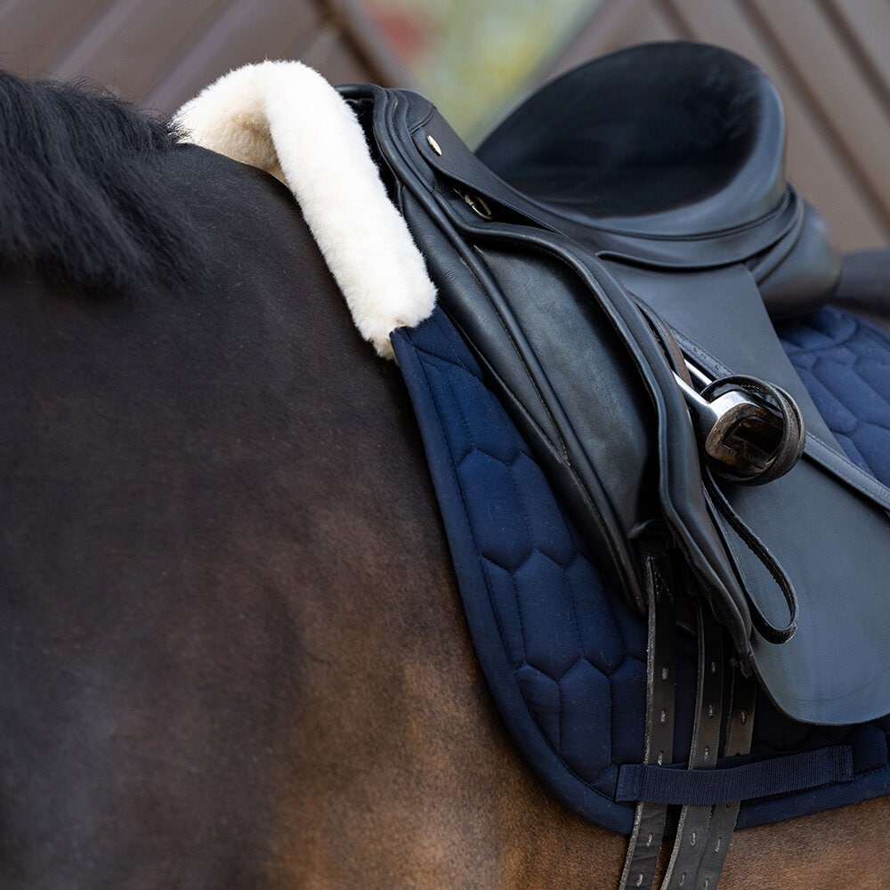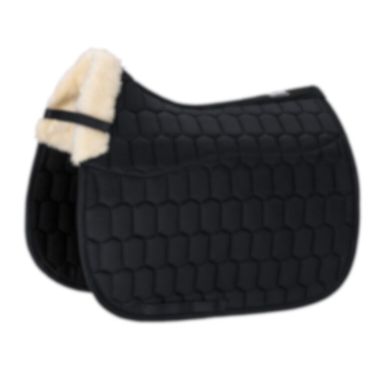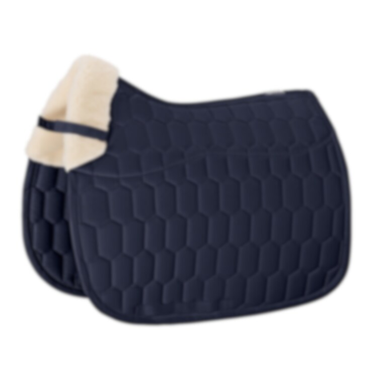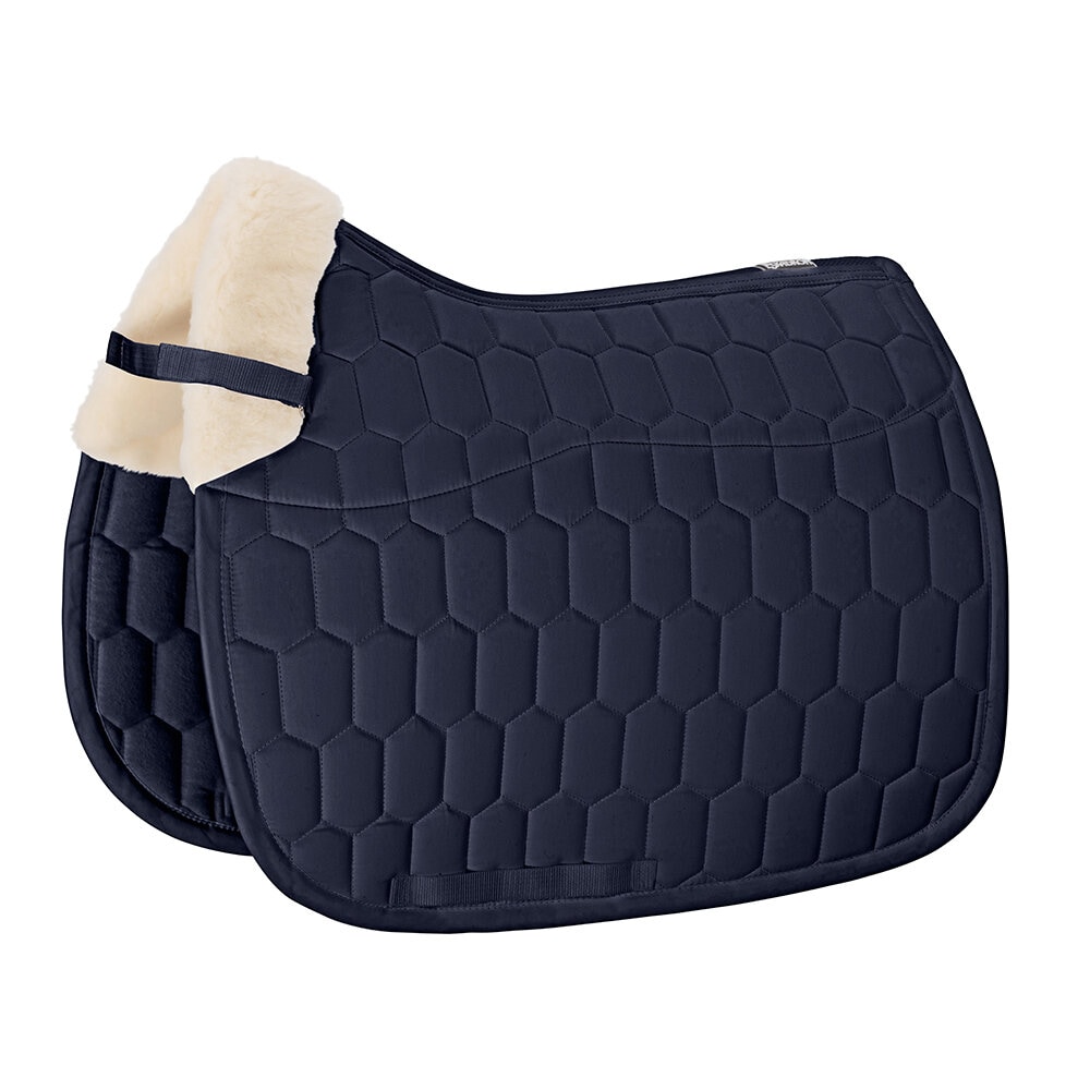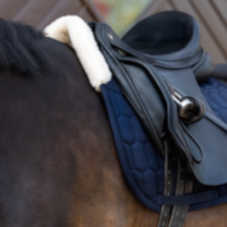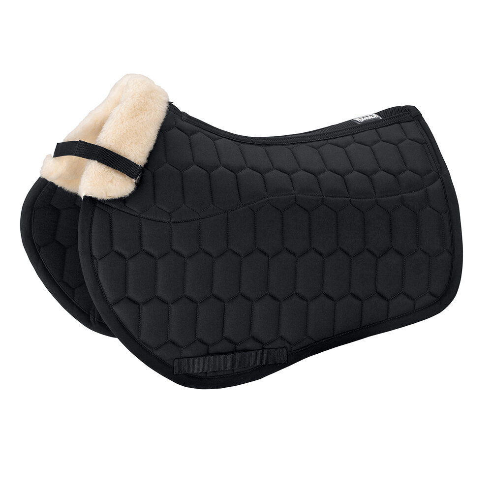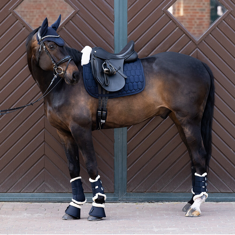 Schabrak från Eskadron med yttertyg i bomull och insida i molton. Insidan är tillverkad av EVO WOOL i sadelområdet, upp över manken och bakom sadeln. Schabraket är tryckfördelande och skonsamt mot pälsen och har mycket god andningsbarhet tack vare meshkanalen längs ryggen. Fungerar dämpande och skyddar mot skav. Löstagbart innostrap-system för flexibel främre fixering vid sadeln. Tre separata kanaler för sadelgjordsspännen.