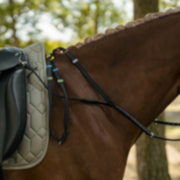 BalanceBuddy är en justerbar hjälptygel med elastik som hjälper ryttaren att hålla balansen vid ridning av hästar som gärna drar ner huvudet. Fästs enkelt i sadelns D-ringar med pistolhakar. Tygeldelen är av slitstark vävribb med färgglada stoppar för att underlätta jämn tygellängd. En praktisk hjälptygel för ökad balans och kontroll.
