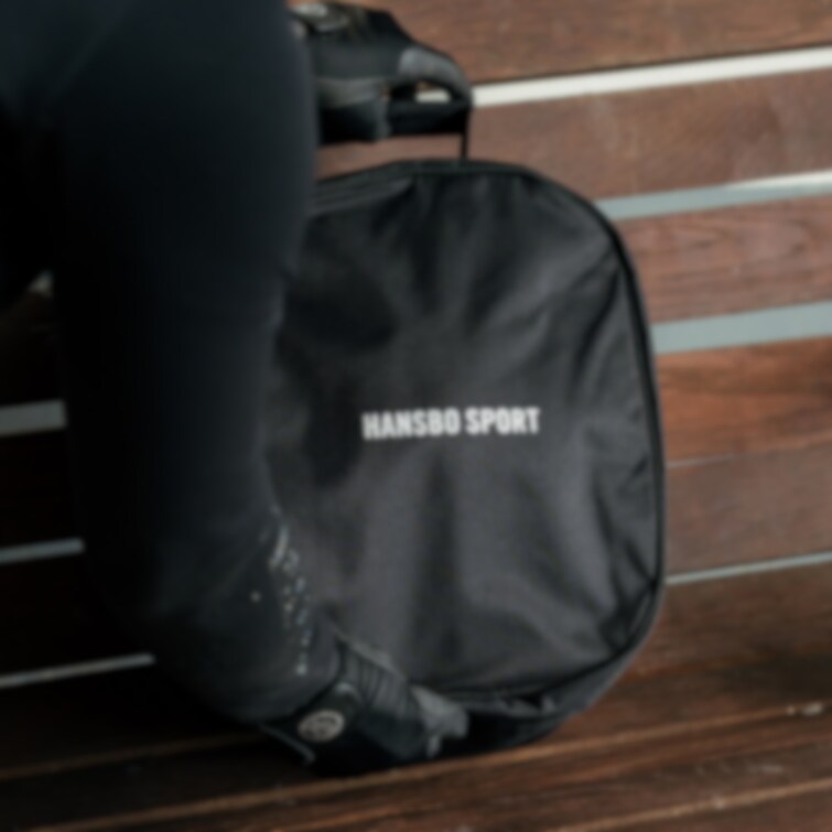 Designad med dragkedja, praktiskt fodrat handtag samt diskret Hansbo Sport- logga på locket.