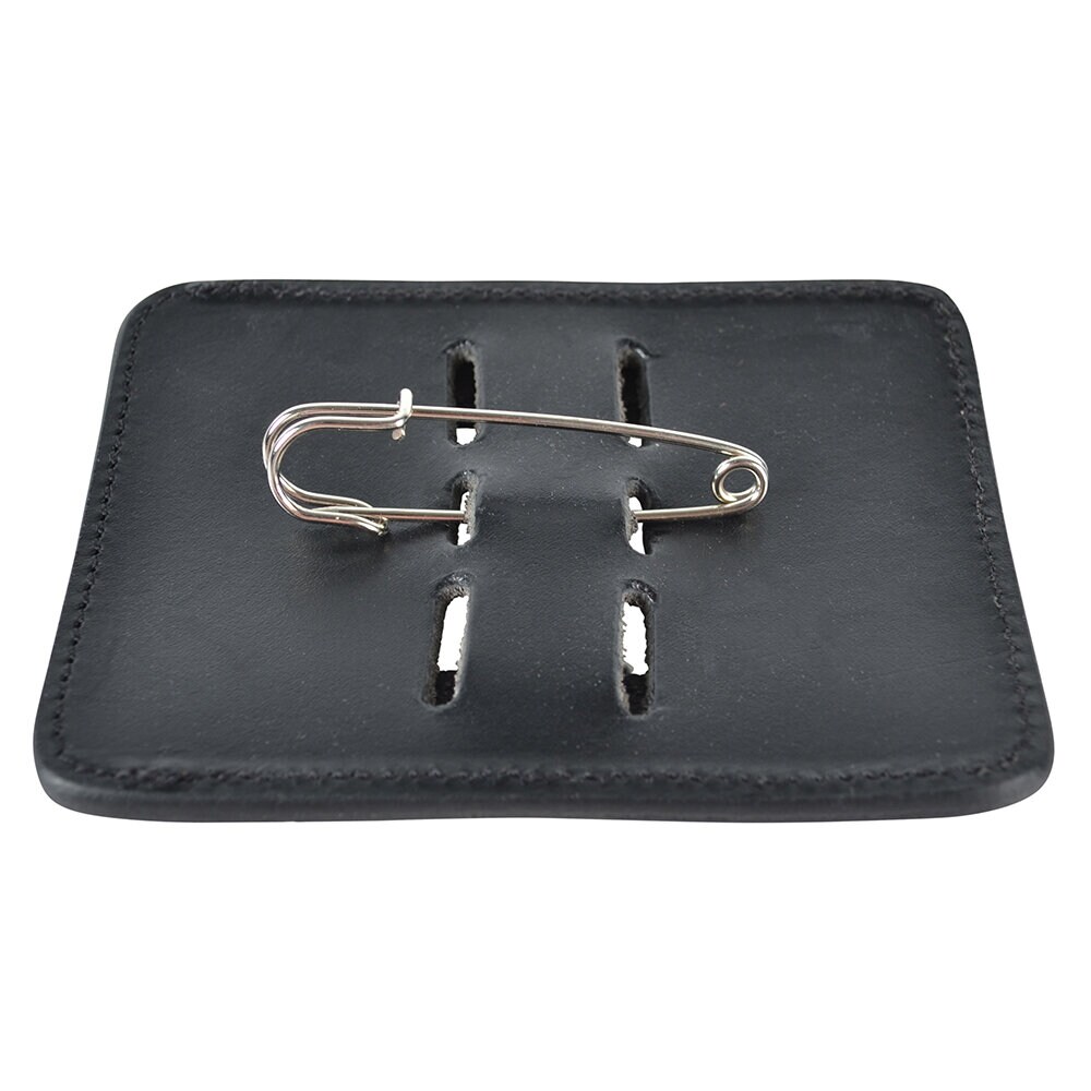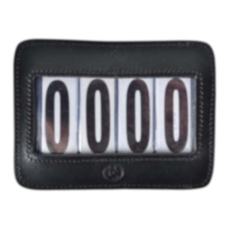 Nummerlapp / tävlingsnummer med fyra siffror, tillverkad av veganskt läder. Kan fästas både på ett träns, på sadeln eller på schabraket. Säljes komplett med utbytbara siffror 1-9, som är lätta att byta.