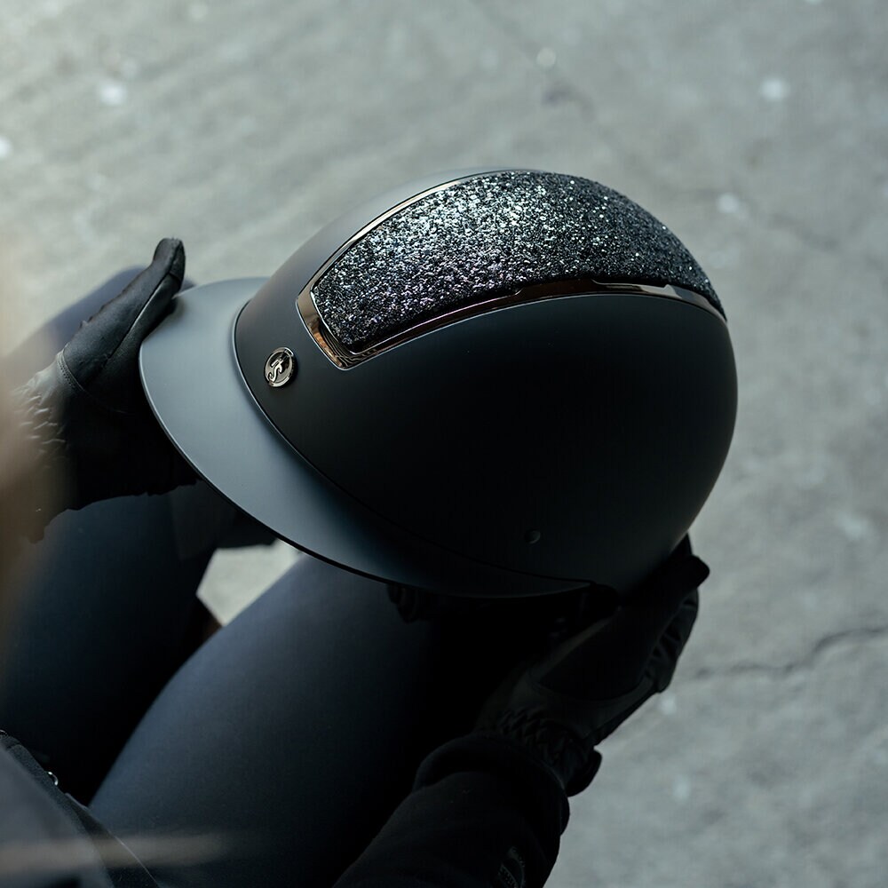 Elegant bred skärm, gnistrande panel med totalt sex ventilationsöppningar. Justerbart hakband av syntetiskt läder, snabbspänne och en mjuk detalj av Cooldry-material. Avtagbart innerfoder av Cooldry - material, torkar snabbt och håller huvudet svalt.Tvättas i maskin vid 40°C. Justerbart huvudband som garanterar perfekt passform.