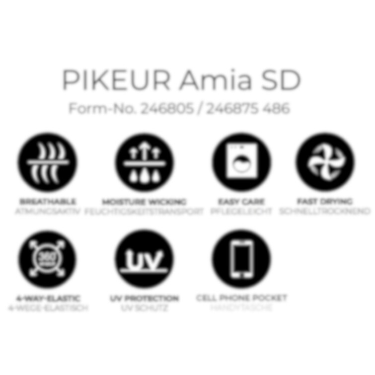 PIKEUR AMIA är en funktionell ridbyxa i normalhög modell, tillverkad i material 486 / flextech som kombinerar 4-vägsstretch, UV-skydd och hög andningsförmåga. Materialet är snabbtorkande och följsamt – perfekt för dagligt bruk.