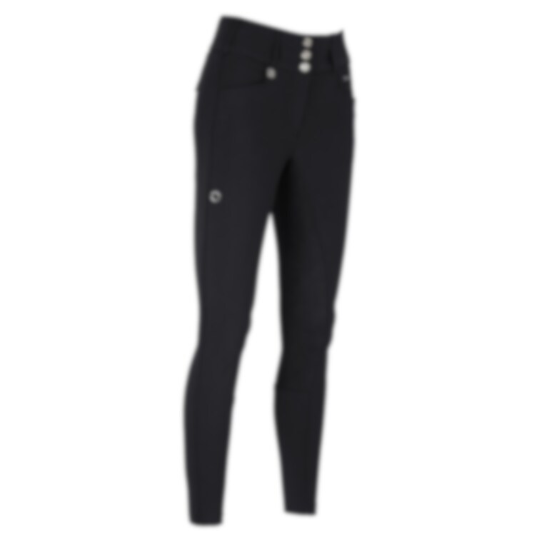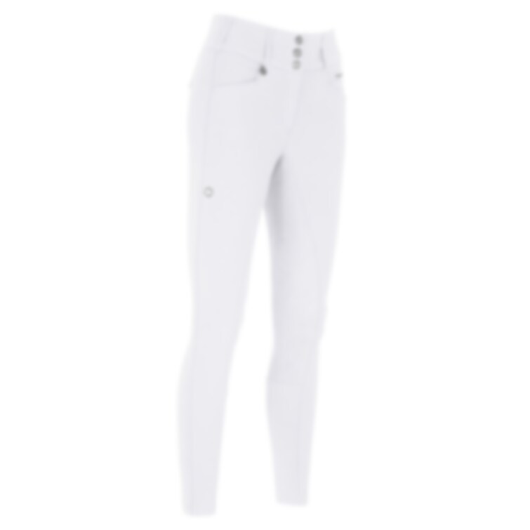 Byxan har bred linning med tre knappar och bälteshällor, samt stretchig infällning på insidan av bensluten för optimal passform i ridstövlar.