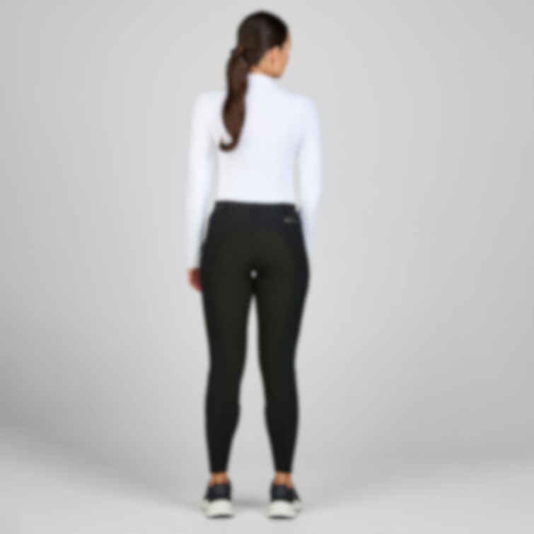 Byxan har en normalhög midja och är helskodd med Flex Faux Leather (FFL) som ger ett följsamt grepp. Den finns även som variant med gripskoning för dig som vill ha en annan känsla i sadeln.
