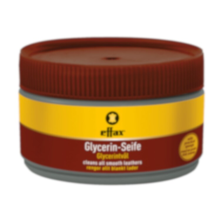 Glycerinetvål för rengöring och underhåll av läder. Svamp medföljer.