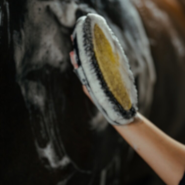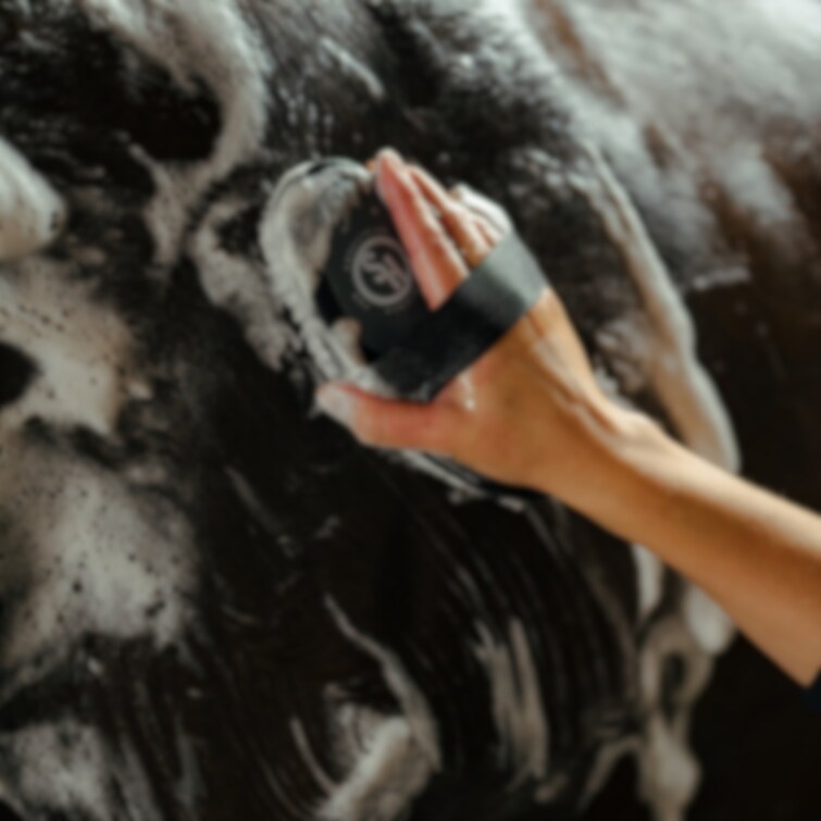 Funktionell tvätt/duschborste med integrerad tvättsvamp. Perfekt att använda vid schamponering av hästen.