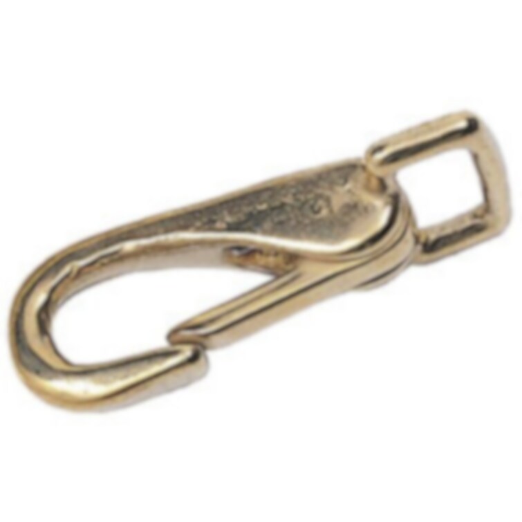Karbinhake i mässing, 65 mm. Öppnas inåt. Bredd på hål för fäste 19mm