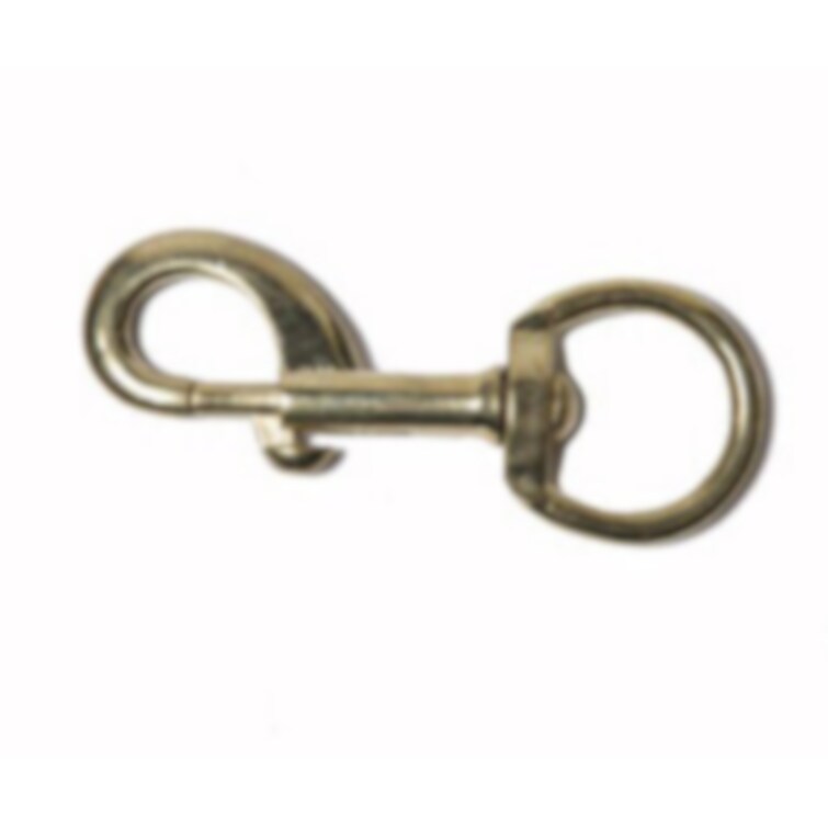 Mässingsfärgad pistolhake, rund ring. Totallängd 9 cm.