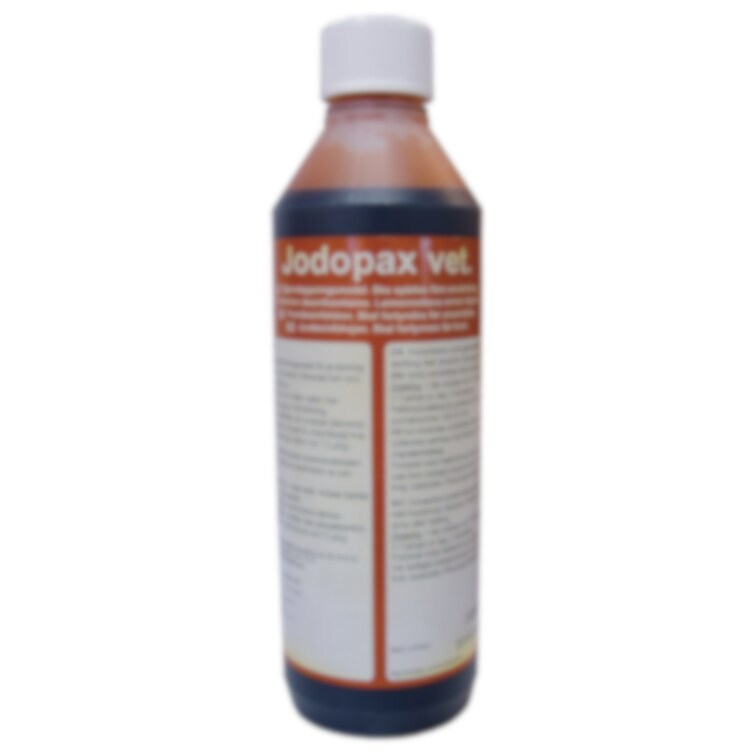 Jodopax Vet är ett koncentrerat desinfektionsmedel från Pharmaxim. Speciellt framtaget för professionellt bruk inom lantbruk och djurhållning. Produkten är effektiv mot bakterier, svampar och virus och används utspädd för ändamål som spendoppning efter mjölkning, sårvård och rengöring av utrustning och stallar. Med sin starka desinfektionseffekt och skonsamhet vid korrekt spädning är Jodopax Vet ett pålitligt val för att säkerställa en ren och säker miljö för djuren.
