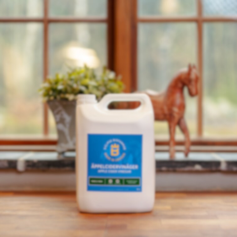 Ren äppelcidervinäger av högsta kvalité. Naturligt fodertillskott för häst. Kan även användas för smaksättning av vatten, samt för tvättning av häst. Har äppelcidervinägerns alla välgörande egenskaper. 5 liter = 100 dagsgivor vid 50ml/dag.