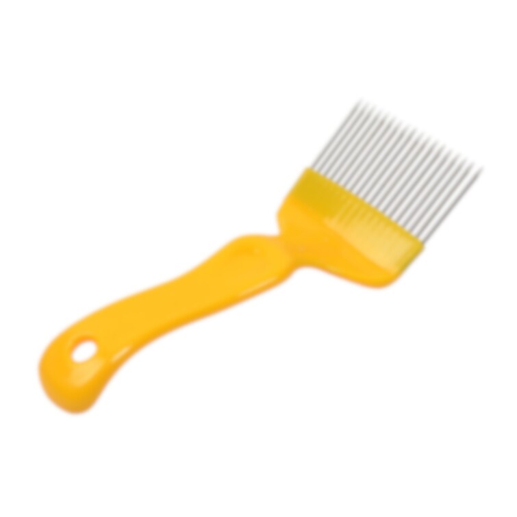 Funktionell och lättvättad avtäckargaffel med rostfria raka tänder och plasthandtag. Enkel avtäckningsgaffel för problemfritt avlägsnande av täckvax. Avtäckningsgaffel med plastskaft och 18 taggar i rostfritt stål.Genom att sticka in avtäckningsgaffelns taggar under täckvaxet och sedan bända upp med handtaget avlägsnar man täckvaxet inför slungning av honungsram.