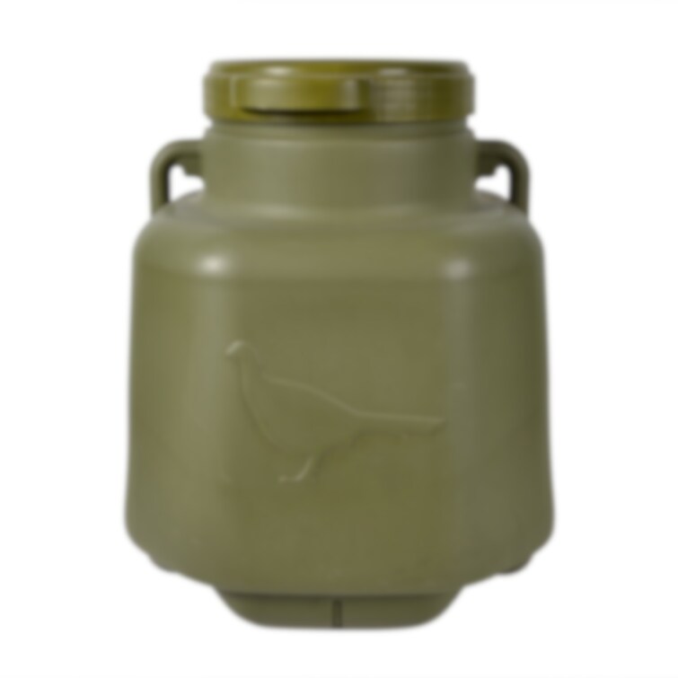 Förslutningsbar vattenbehållare med en kapacitet på hela 40 l. Ideal för transport och förvaring av vatten och foder till höns, kycklingar, rapphöns, fasaner och andra fåglar. Lufttät behållare med vridlock för enkel påfyllningvilket medför attvattnet kan hållas rent. Användare gör med fördel egna hål med enkla verktyg och monterar dit valfria nipplar för att konvertera denna behållare till en vattenautomat som passar användarens arter.