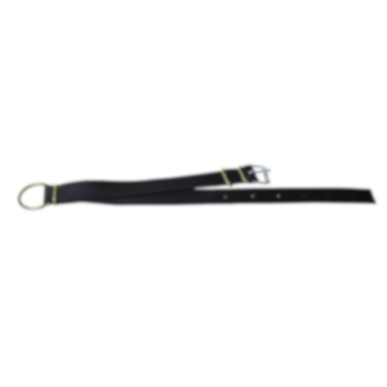 50 mm brett, syntetband med läderförstärkning på utsidan vid hålen.