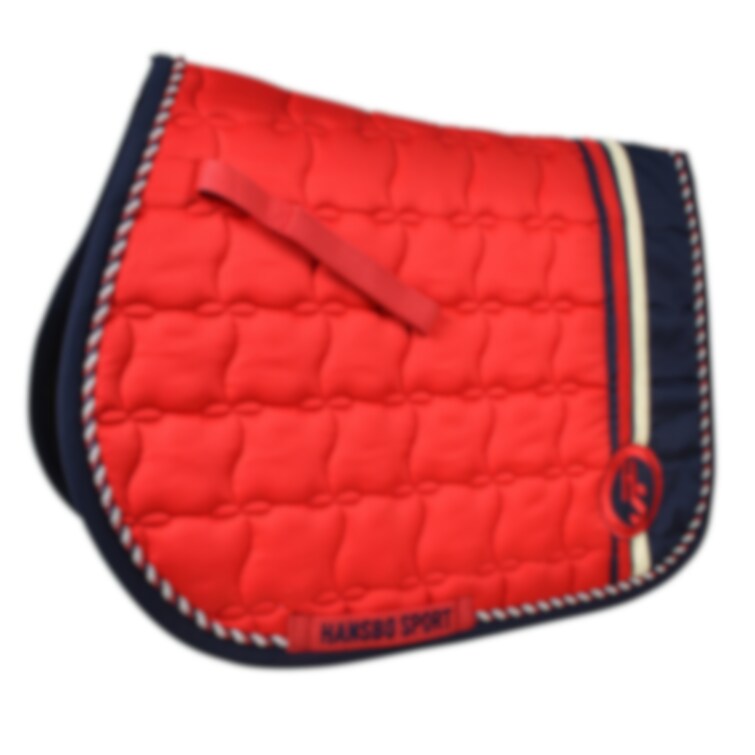Schabrak med detaljrik quilt. HS logo, extra banddetaljer på vänster sida. Polyesterbaksida för bättre andbarhet. Kardborre upptill. Tvinnad tjock passpoal i marin/röd/vit.