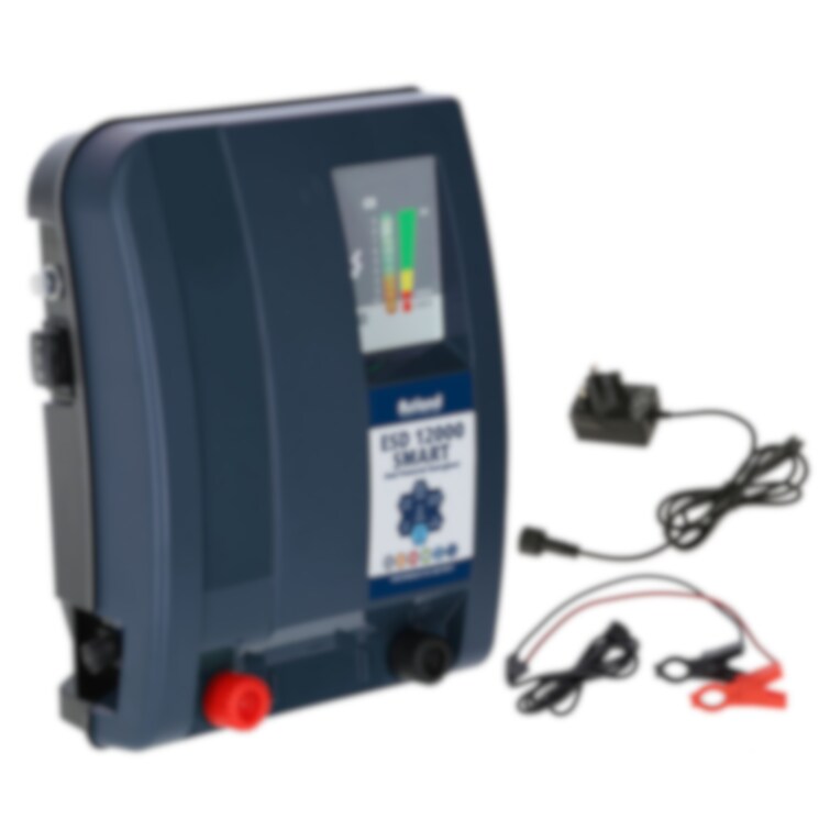 ESD 12000 SMART är ett professionellt, appstyrt elstängselaggregat för långa stängsel som kan drivas antingen med 12V batteri eller via nätanslutning. Aggregatet kan övervakas och fjärrstyras via mobilapp.