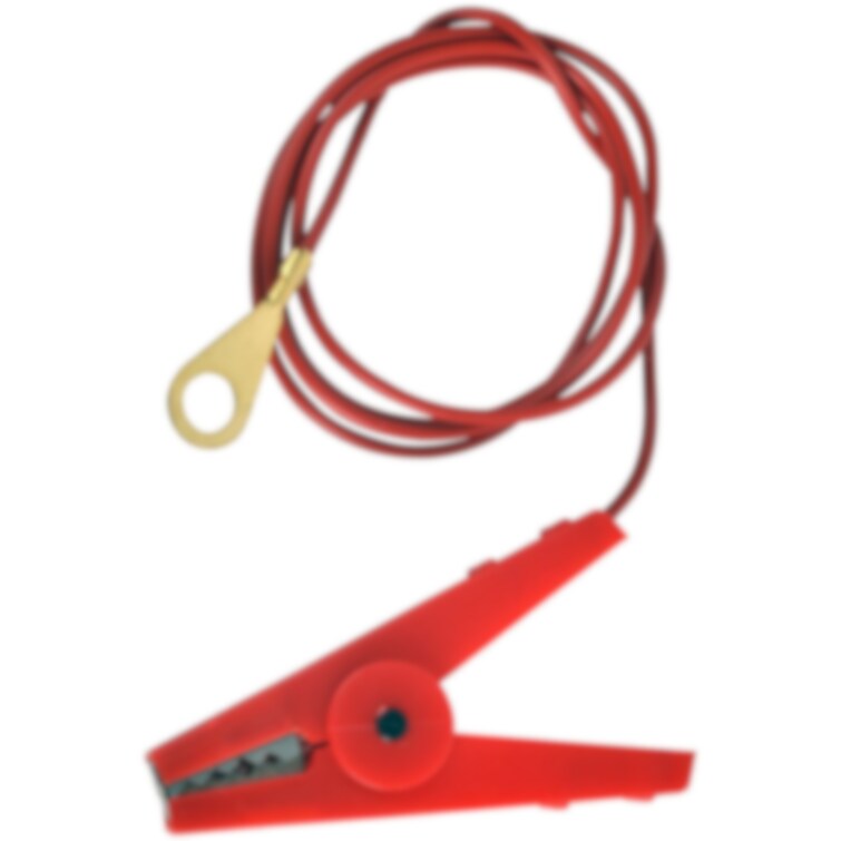 Med klämma för järntråd eller vajer. Kabeln ansluts till matarledningen eller direkt till elstängselapparaten. Längd på kabeln 100 cm.