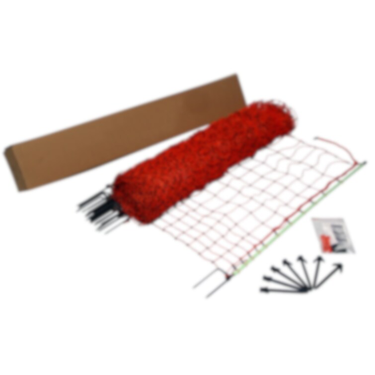 Höjd 112 cm. Längd 50m. 0,7 Ohm/met. Elstängselnät, för höns och andra smådjur. 12 horisontella polytentrådar av hög kvalitet och rostfri ledare, gjutna kors. Nedre tråden är inte strömförande för att minimera spänningsbortfall.Maskstorlek 7,5x20 cm/7,5x16 cm / 7,5x15 cm / 7,5x10 cm / 7,5x5 cm. 15 stolpar Ø 13mm med dubbelspets monterade på nätet. För längre sträckor kopplar du ihop fler nät.