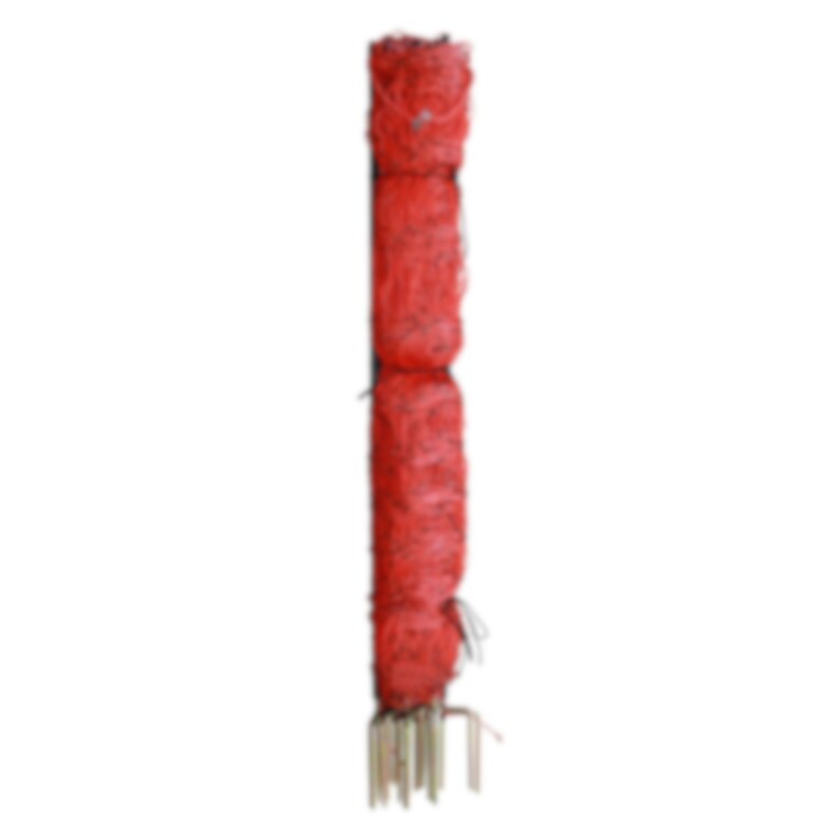Höjd 145 cm. Längd 50m. 0,7 Ohm/met. Extra starkt elstängselnät för vilt/varg, där både stolpar och isolatorer är av kraftig kvalitet. 11 horisontella polytentrådar av hög kvalitet och rostfri ledare, gjutna kors.Nedre tråden är inte strömförande för att minimera spänningsbortfall. Maskstorlek 15x20 cm/15x10 cm/15x15 cm. 15 stolpar, Ø19mm, med dubbelspets monterade på nätet. För längre sträckor kopplar du ihop fler nät.